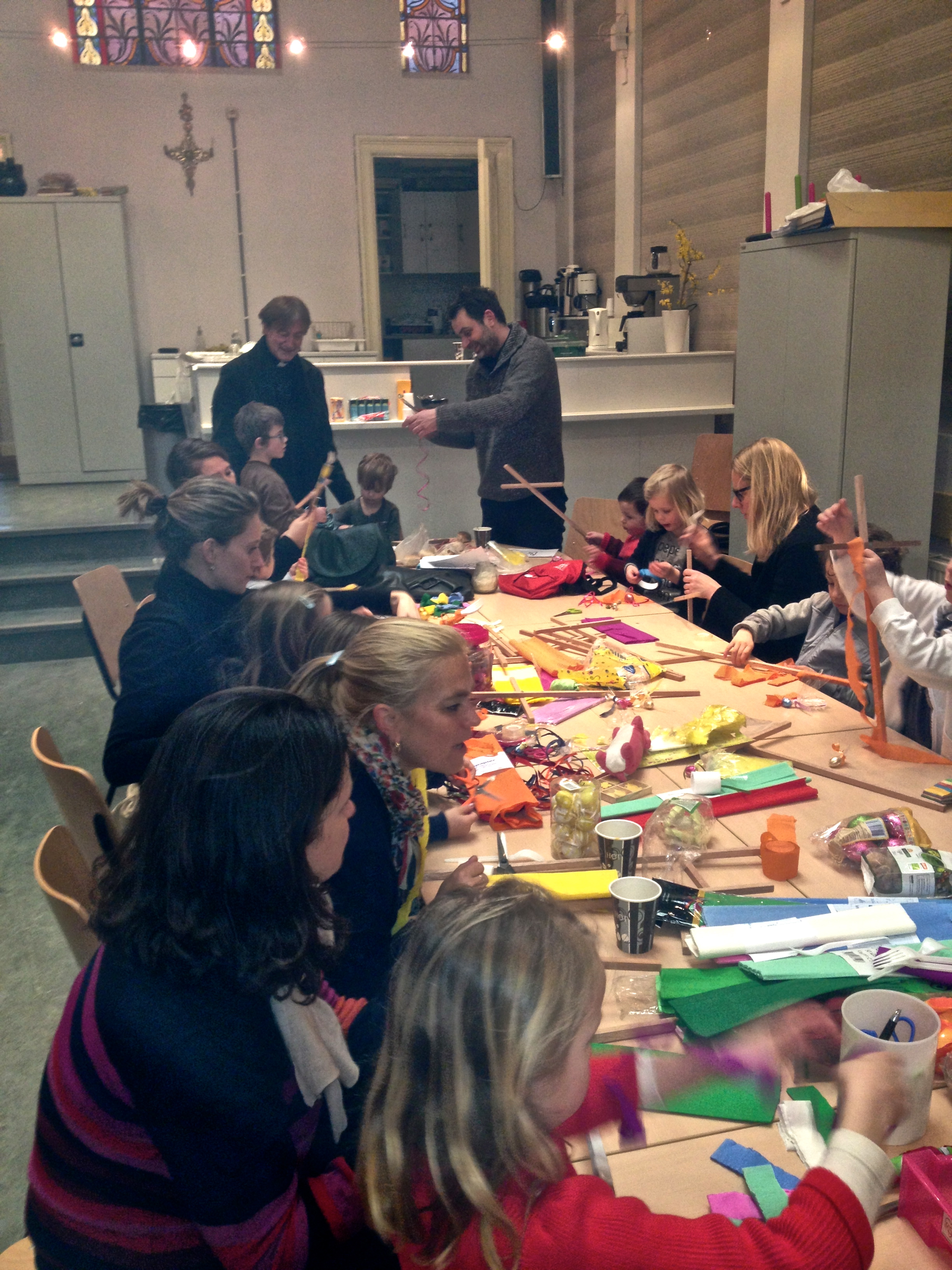 De stokken zijn helemaal versierd door de kinderen en zullen tijdens de viering van Palmpasen feestenlijk uitgeleide gedaan worden om ze in een stoet naar het naastgeleden Laurens Antonuis te brengen. De bewoners daar stellen er ieder jaar weer prijs op dat we hen op deze manier bij de kerk betrekken.