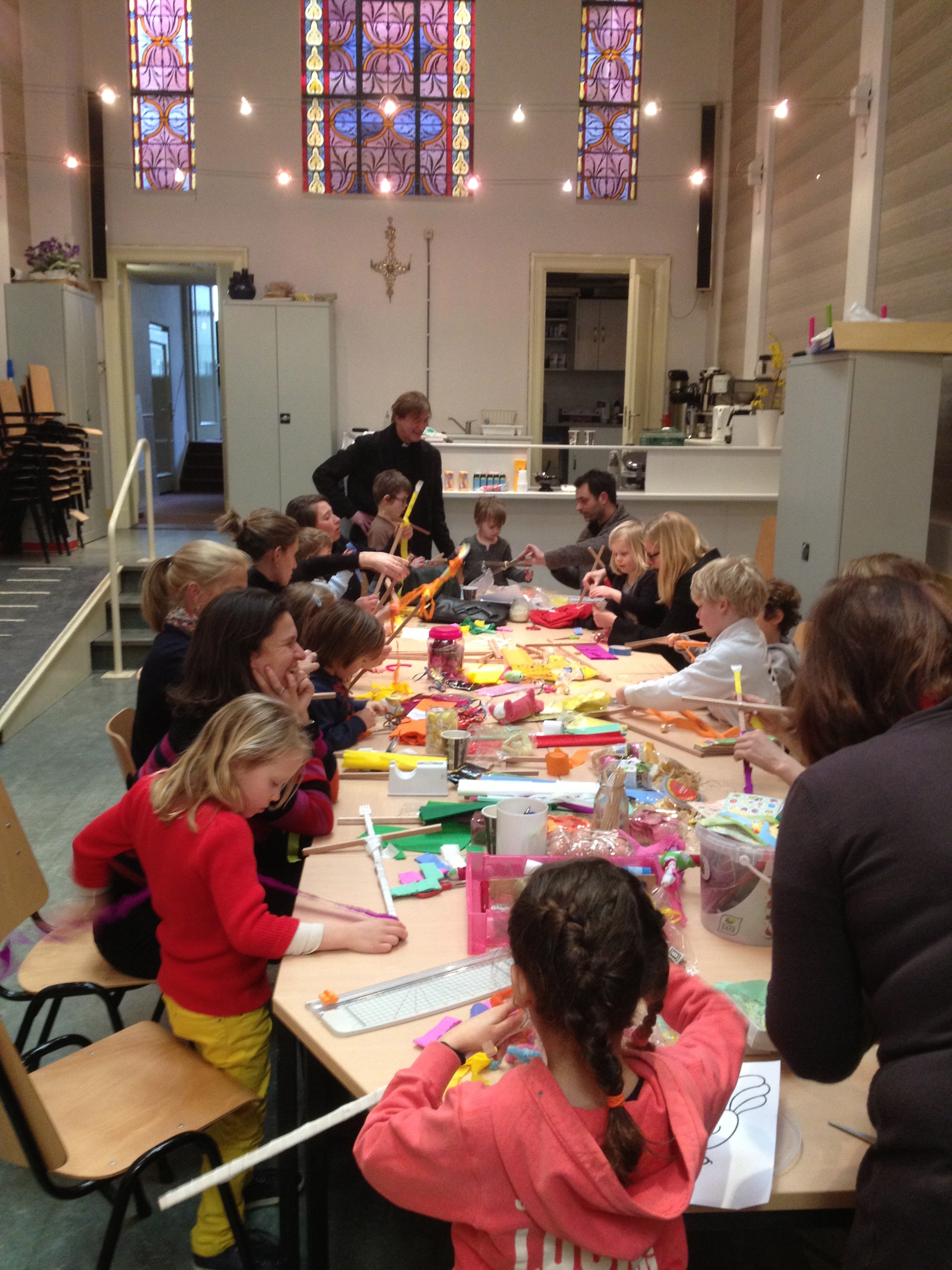Zoals ieder jaar worden op de zaterdag voor Palmpasen de palmpaasstokken gemaakt in de Ark. Dit jaar was er behoorlijk wat animo voor getuigen de foto’s!