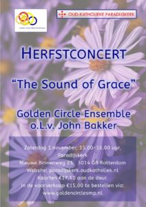 Het Golden Circle Ensemble presenteert het herfstconcert The Sound of Grace: een muzikale middag vol verstilling, hoop en schoonheid. Op het programma staan onder meer Elgars Lux Aeterna, Make me a Channel of Thy Peace, Whitacres The Sea Lullaby en het tijdloze Amazing Grace, aangevuld met moderne composities van Kim Arnesen, James Whitbourn en Anna Lapwood.