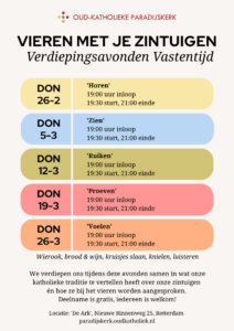 Data: donderdag 26 februari, vrijdag 6 maart, donderdag 12, 19 en 26 maart